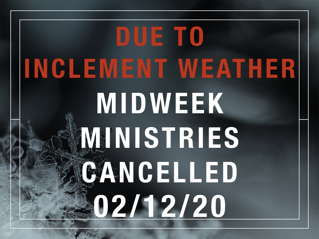 « All Events This event has passed. Midweek Ministries Cancelled February 12, 2020 « February 2020 Monthly Bulletin Encounter Gathering » Midweek Ministries is cancelled this evening due to weather. Have a great evening! Add to calendar Google Calendar iCalendar Outlook 365 Outlook Live Details Date: February 12, 2020 Venue Faith Church 800 Wenzel Road Peru, IL 61354 United States + Google Map Phone 815-223-2701 View Venue Website
